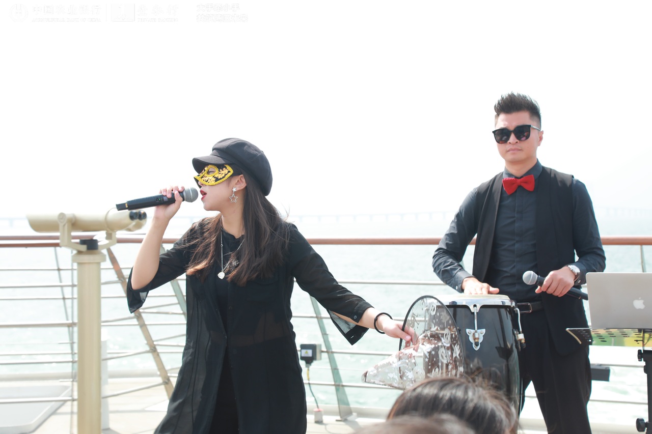 在大灣區(qū)二號返程途中,船尾響起的音樂聲,吸引游客們互動。