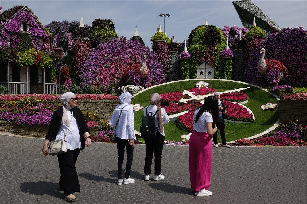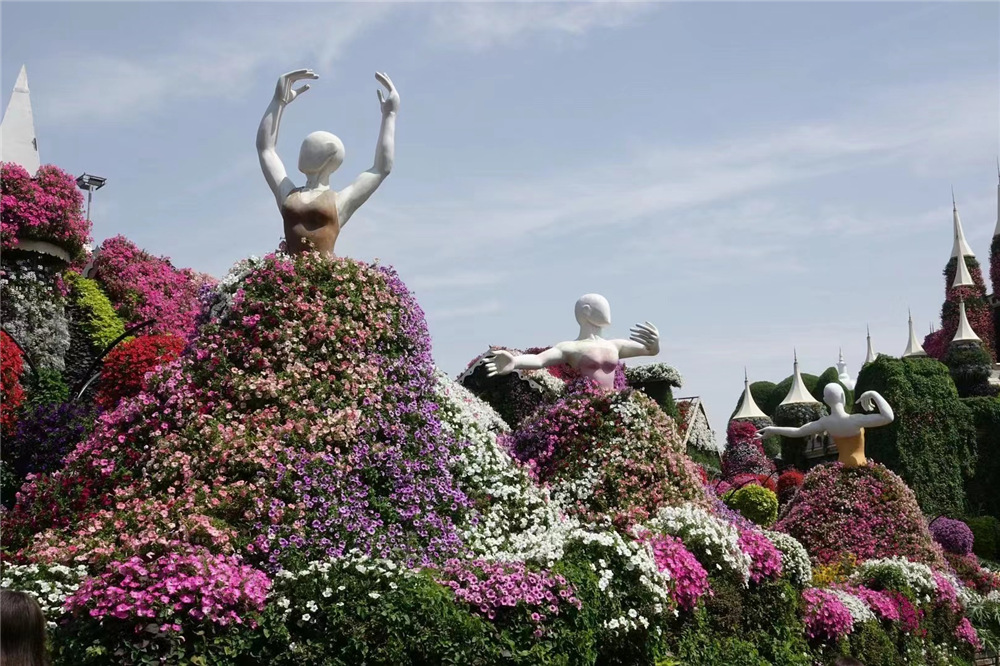 迪拜奇跡花園是迪拜著名的戶外休閑度假勝地,建造時耗費了約4500萬株鮮花,被稱為世界上最美、最大的花園。李仁奇 攝