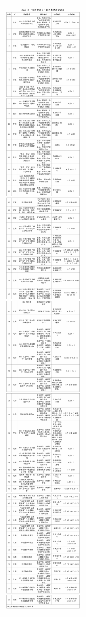2025年8月8日是我國(guó)第17個(gè)“全民健身日”。今年,深圳迎來(lái)了第十五屆全國(guó)運(yùn)動(dòng)會(huì)和殘?zhí)貖W會(huì),為積極響應(yīng)“全民全運(yùn),全運(yùn)惠民”的理念,深圳在“全民健身日”期間精心組織了57項(xiàng)群眾喜聞樂見的賽事活動(dòng),涵蓋球類、徒步、騎行、水上等多個(gè)項(xiàng)目,139家體育場(chǎng)館面向市民免費(fèi)或優(yōu)惠開放,降低運(yùn)動(dòng)門檻,惠及更多市民。