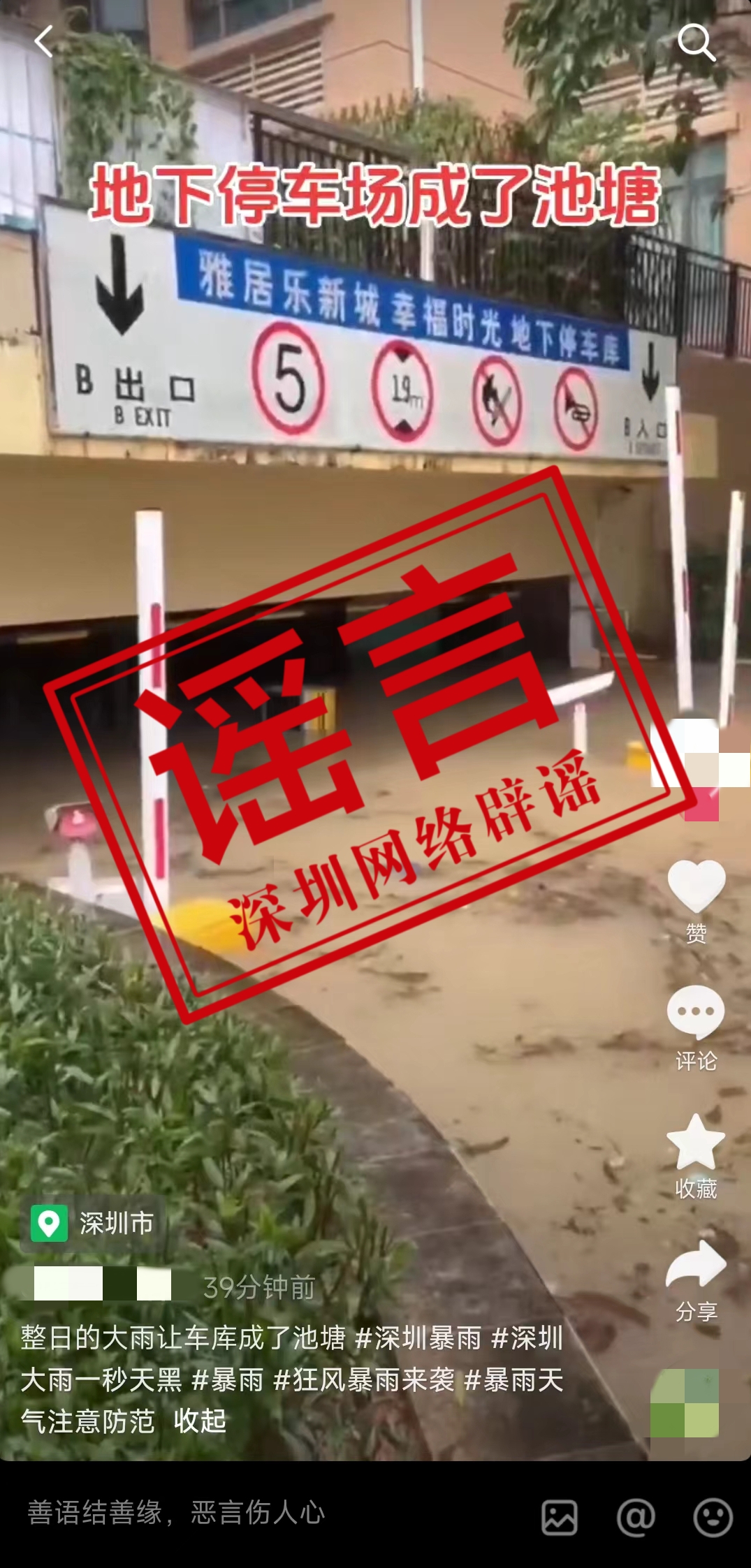 網(wǎng)傳深圳暴雨致地下車庫(kù)被淹?并非發(fā)生在深圳!