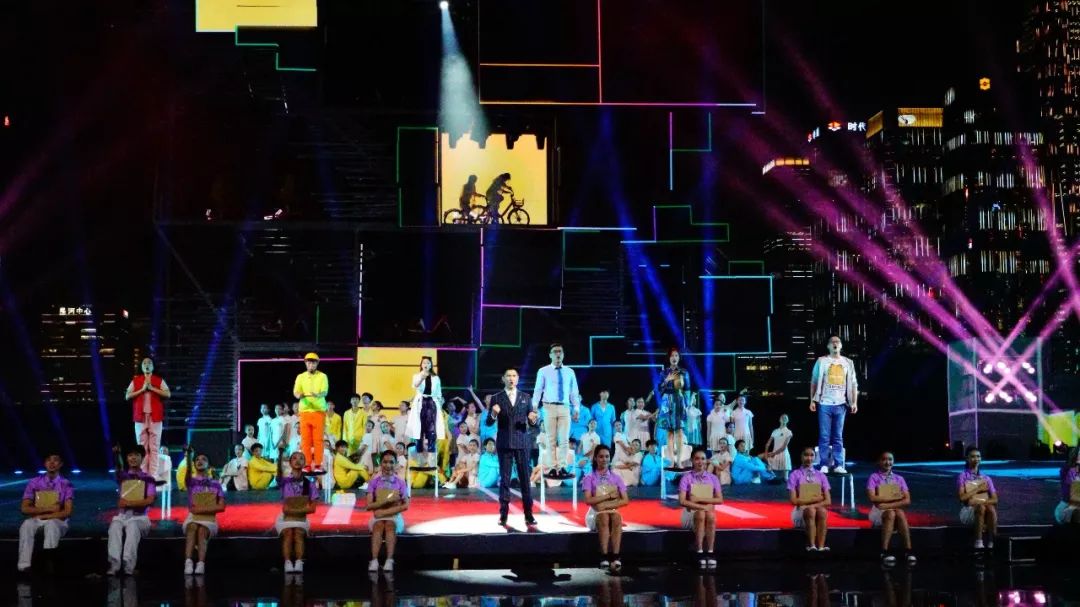 主題曲《新的一天》整首歌以小見大,用年輕上班族的拼搏精神體現(xiàn)深圳人共性,引領(lǐng)時代進步潮流?!? 拒絕空想冒險/誰不渴望明天/有夢就要實現(xiàn) ”,交織的夢想成就了深圳。“ 新的一天就在眼前/我的命運我要自己改變 ”,改革開放賦予了這個時代勇敢堅持的精神。為了排演這個節(jié)目,導演卓依·馬可尼利和全體演員歷經(jīng)了一個月的排練,克服了演出場地露天的高溫,在整個節(jié)目近五分鐘的時長里,展現(xiàn)了新時代青年對于工作的拼勁與堅韌、活力和激情,彰顯了剛?cè)嵯酀?、自強不息的深圳精神?nbsp;
