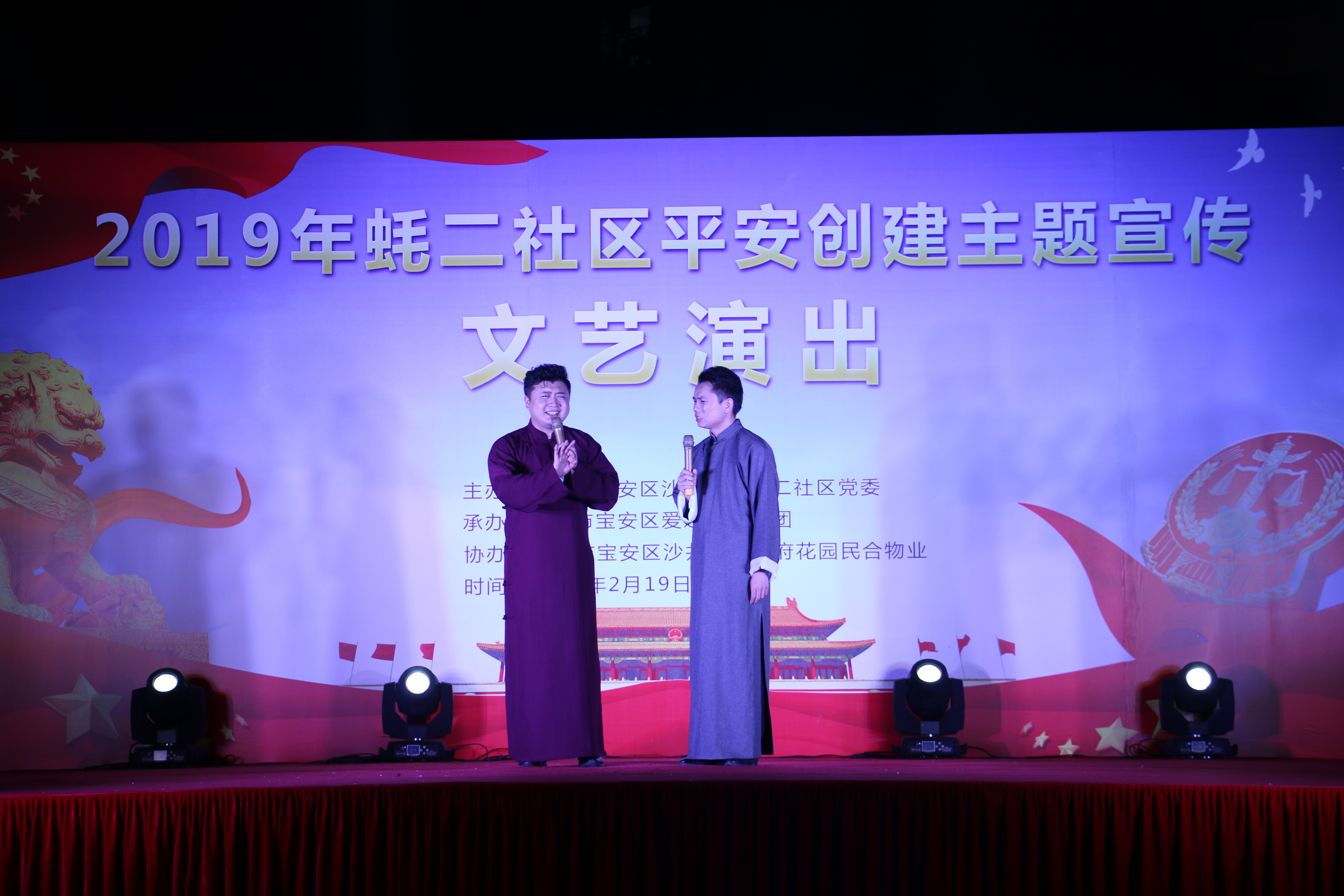 2月19日晚,由寶安區(qū)沙井街道蠔二社區(qū)黨委主辦的“平安創(chuàng)建宣傳”文藝演出活動(dòng)在學(xué)府花園舉行。