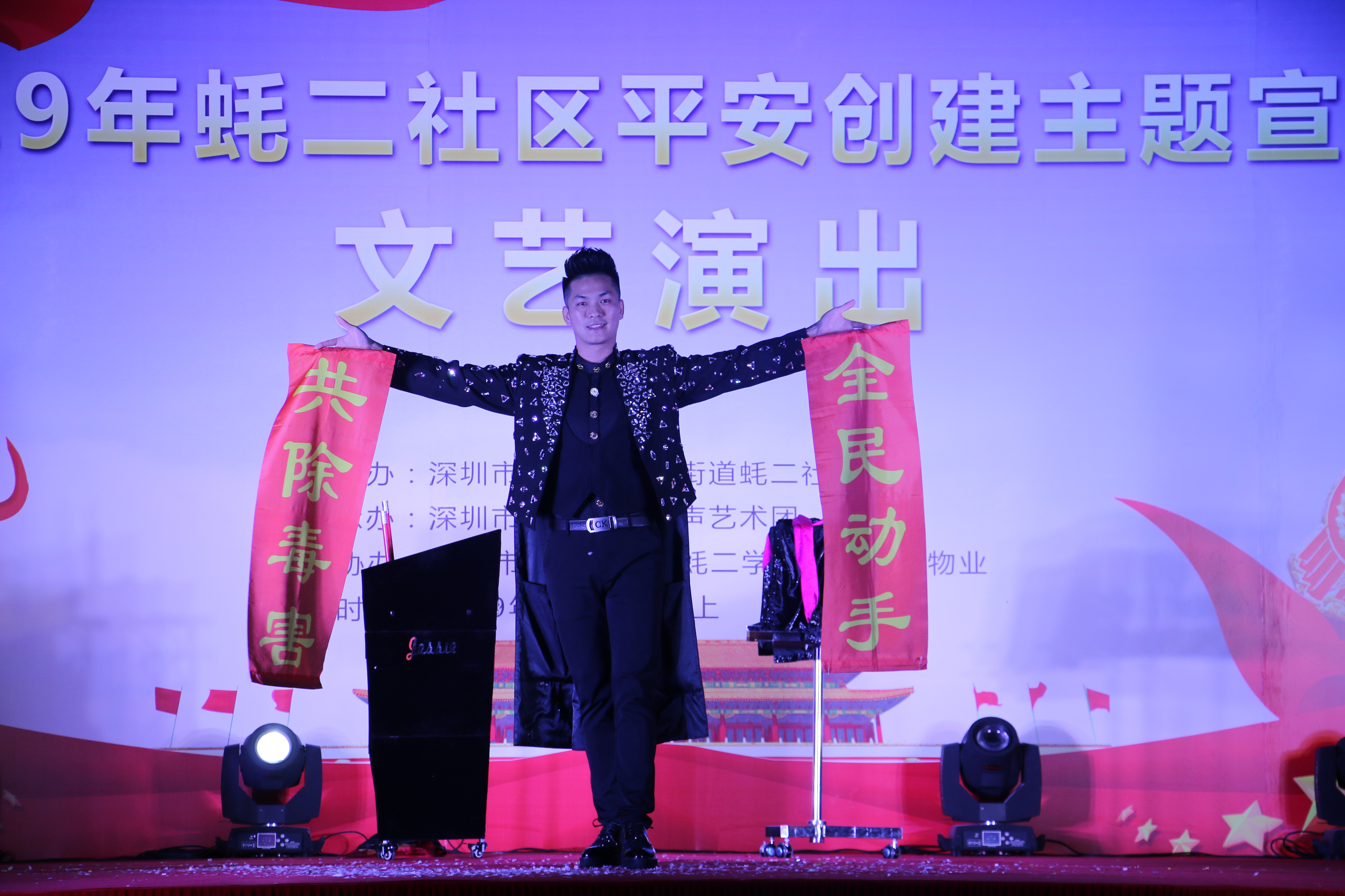 深圳新聞網(wǎng)2019年2月20日訊 (記者/周錦春 通訊員/孫善文)2月19日是元宵節(jié),當(dāng)晚,由寶安區(qū)沙井街道蠔二社區(qū)黨委主辦,寶安區(qū)愛(ài)之聲藝術(shù)團(tuán)承辦的“平安創(chuàng)建宣傳”文藝演出活動(dòng)在學(xué)府花園舉行。本次活動(dòng)包括了戲曲、歌曲、舞蹈、小品、魔術(shù)等多種形式,豐富多樣,生動(dòng)有趣,為近500名社區(qū)居民提供了一場(chǎng)精神盛宴。