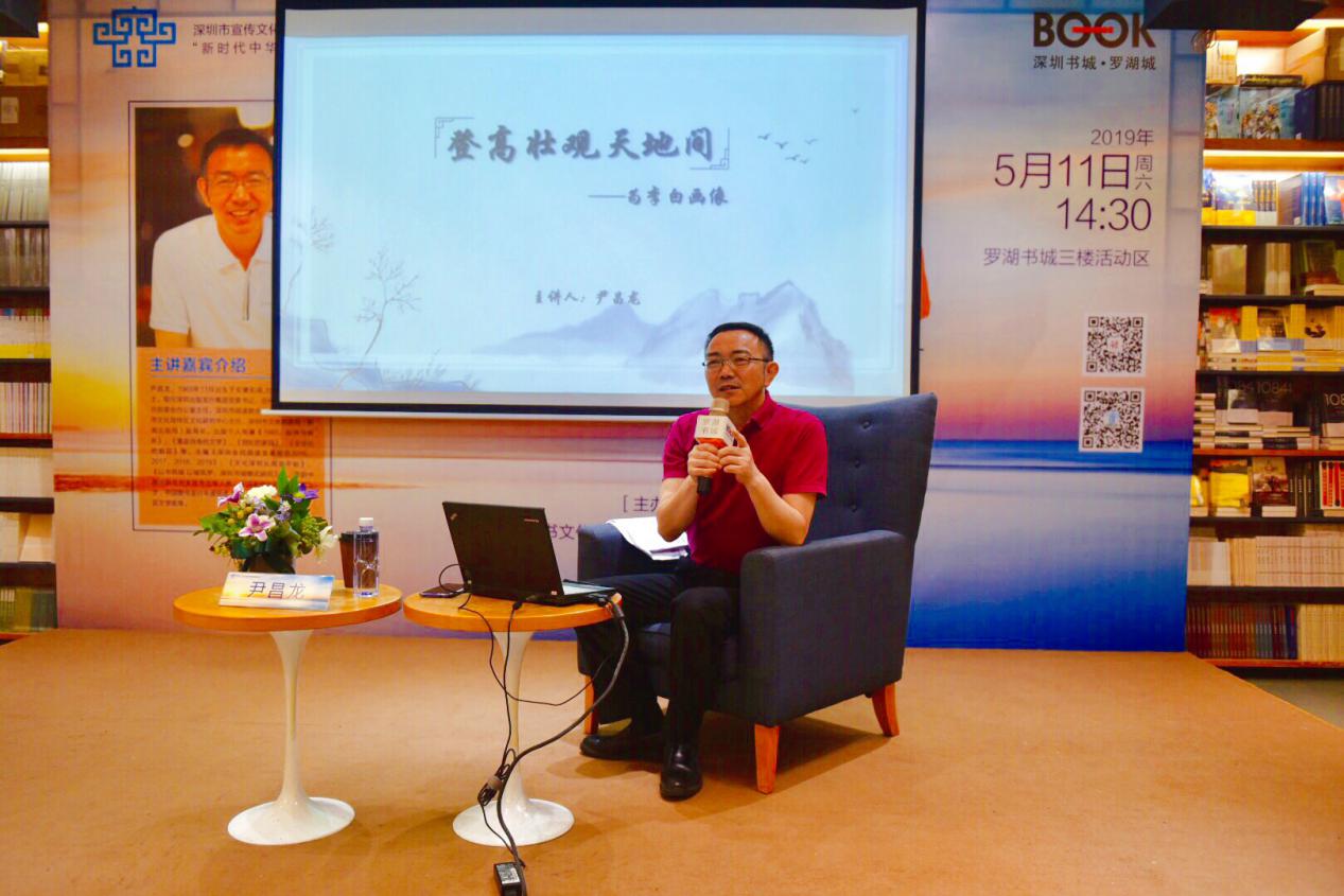 5月11日下午,“新時(shí)代中華優(yōu)秀傳統(tǒng)文化進(jìn)社區(qū)”項(xiàng)目首場(chǎng)講座之“登高壯觀天地間——為李白畫像”在羅湖書城三樓開(kāi)展。本次活動(dòng)由深圳市壹書文化傳播有限責(zé)任公司、深圳書城羅湖城主辦,特邀深圳出版發(fā)行集團(tuán)黨委書記、總經(jīng)理尹昌龍博士擔(dān)任主講嘉賓,解讀多面詩(shī)仙李白,為聽(tīng)眾奉上一場(chǎng)難得的文學(xué)盛宴。講座還未開(kāi)始,現(xiàn)場(chǎng)已座無(wú)虛席,過(guò)道上站滿了李白迷,聽(tīng)眾們?cè)缭缇蛠?lái)靜候著了。