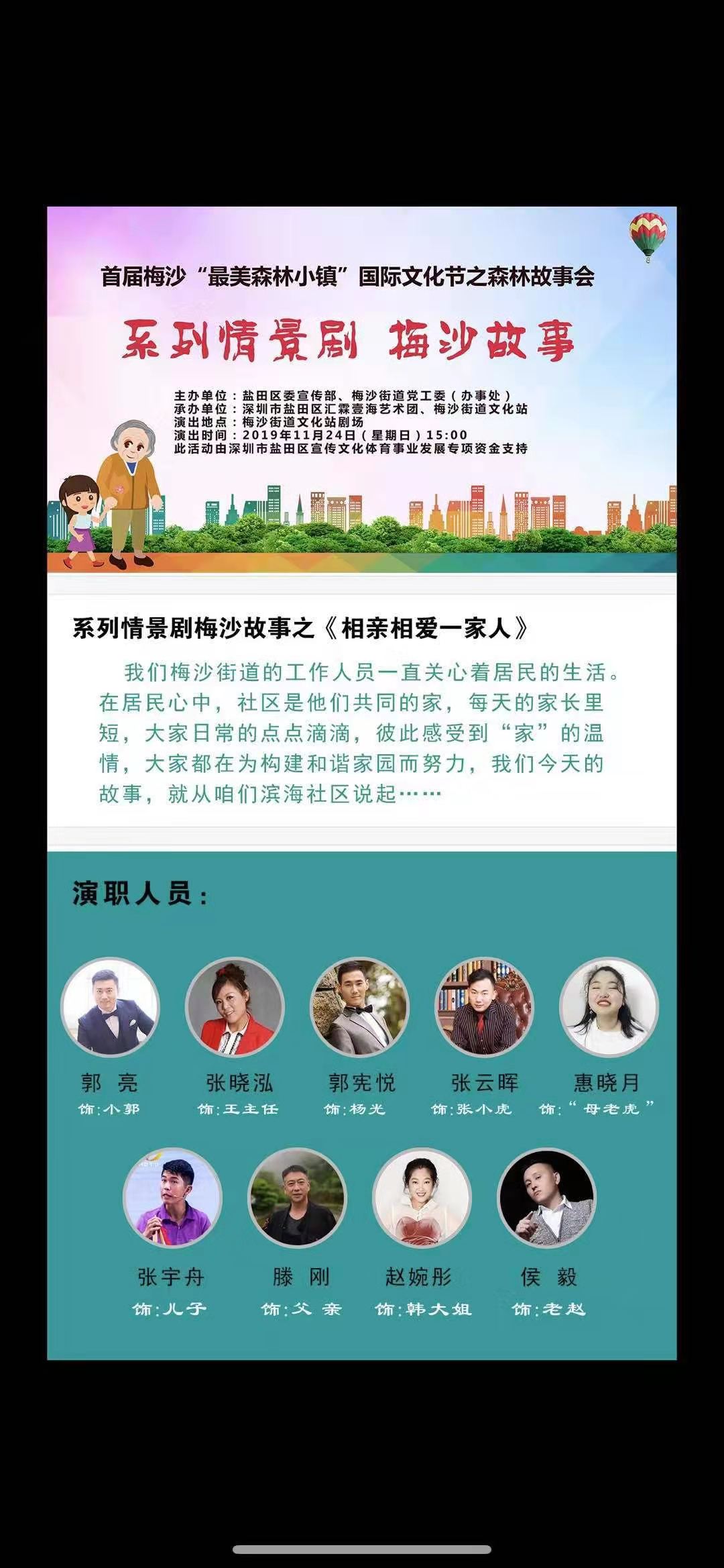 11月24日,由深圳市鹽田區(qū)委宣傳部、梅沙街道黨工委(辦事處)主辦,深圳市鹽田區(qū)匯霖壹海藝術(shù)團(tuán)、梅沙街道文化站承辦,深圳市鹽田區(qū)宣傳文化體育事業(yè)發(fā)展專項(xiàng)資金支持的首屆梅沙“最美森林小鎮(zhèn)”國際文化節(jié)之森林故事會在梅沙街道文化站劇場拉開了帷幕。