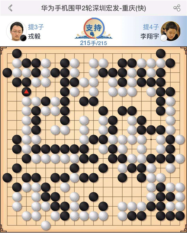 賽后,深圳宏發(fā)隊(duì)教練、著名世界冠軍羅洗河九段對(duì)四盤(pán)棋作了簡(jiǎn)要點(diǎn)評(píng):“第一臺(tái)陶欣然執(zhí)黑對(duì)陣?yán)钴幒馈W笙陆呛?3應(yīng)該先走24打交換一個(gè)次序,實(shí)戰(zhàn)虧損。中盤(pán)右下角形成打劫時(shí),黑棋轉(zhuǎn)換判斷錯(cuò)誤局面更加不利。后面中央黑棋再度制造劫爭(zhēng)無(wú)奈沒(méi)有劫財(cái),敗北。”“第二臺(tái)主將申旻俊執(zhí)白對(duì)陣楊鼎新。開(kāi)局右下角作戰(zhàn)白棋退讓小虧一點(diǎn),中盤(pán)上方作戰(zhàn)時(shí)候雙方錯(cuò)進(jìn)錯(cuò)出,最后由于白棋下出緩手沒(méi)有把握機(jī)會(huì)換回局勢(shì)。官子時(shí)候黑棋發(fā)揮更好,擴(kuò)大優(yōu)勢(shì)至終局。”“第三臺(tái)快棋戎毅執(zhí)黑對(duì)陣小將李翔宇。白60分?jǐn)喙艉谄鍟r(shí)形狀不佳,黑機(jī)敏反斷白棋并做活,之后黑越戰(zhàn)越勇,215手,黑中盤(pán)勝?!薄暗谒呐_(tái)時(shí)越執(zhí)白對(duì)陣小將何語(yǔ)涵。開(kāi)局平穩(wěn)白稍好,白52失誤走53更嚴(yán)厲。實(shí)戰(zhàn)被黑53跨斷后局面接近。中后盤(pán)雙方失誤都較多,最終黑棋幸運(yùn)的以3/4子差距獲勝。”