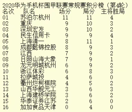2020華為手機(jī)杯中國圍棋甲級(jí)聯(lián)賽第四輪深圳宏發(fā)3:1龍?jiān)鞒呛贾?nbsp;