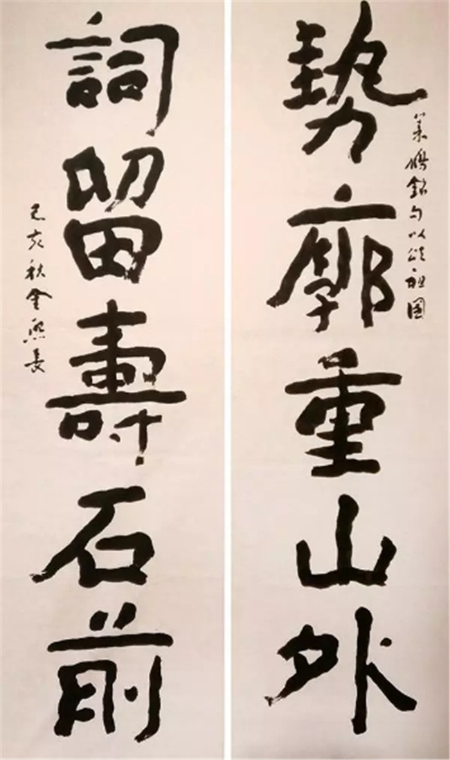 “筆筆有出處,字字有來歷。每個(gè)字用筆中鋒但結(jié)字奇古;書風(fēng)野逸但又視覺大氣。正如創(chuàng)作者所言:中國是歷史悠久的文化大國,所以中國的文字書寫應(yīng)該和大國文化相吻合的,以雄渾大氣為主要審美意識(shí)的表現(xiàn)手法方能展現(xiàn)中國精神。在技法上他還認(rèn)為,秀媚易作雄渾難;小巧易作高簡難。故在本次《金體》創(chuàng)作上的審美觀念上,他仍以三個(gè)第一為導(dǎo)向,即“結(jié)體以正大老成為第一,用筆以簡重真切為第一,書風(fēng)以高古偉岸為第一。