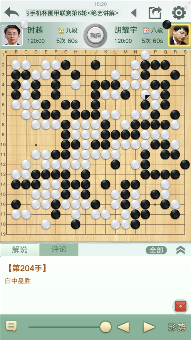 第四臺,時越執(zhí)白對陣胡耀宇。在前幾盤不盡人意的情況下,壓力較大。