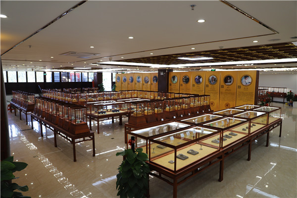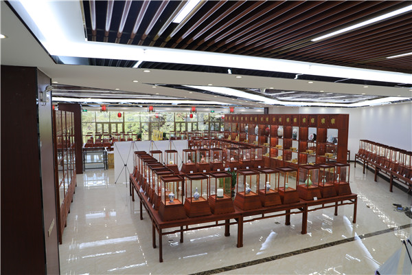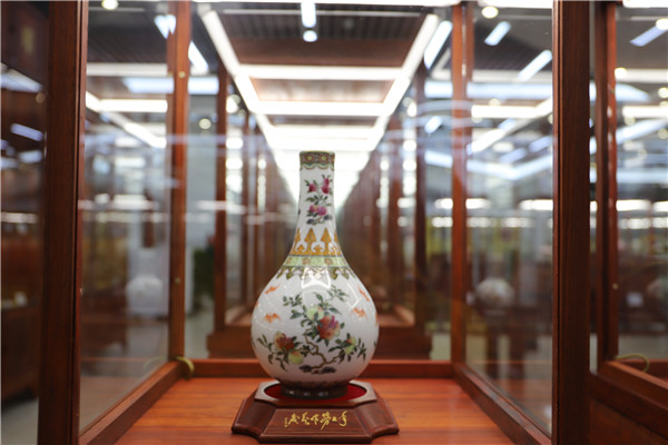 值得重點(diǎn)介紹的是,在珍品陳列區(qū),有不少原全國人大常委會(huì)副委員長李鐵映同志親自創(chuàng)作的工藝美術(shù)品。一是“鐵映十八式紫砂”,是李鐵映先生自身藝術(shù)文化修養(yǎng)的結(jié)晶。他以青銅、古玉等重器國寶為模,以詩詞、文論為識,以宜興獨(dú)有的紫砂材質(zhì)和豐富的工藝手段,吸取中國各種傳統(tǒng)工藝的特點(diǎn),創(chuàng)意了具有民族特色的簡潔古雅的紫砂新藝術(shù),精妙構(gòu)思,博觀約取,歷數(shù)年制成。2010年元月,李鐵映先生將“鐵映十八式紫砂” 捐贈(zèng)一套給國家博物館。二是限量仿制清宮琺瑯彩瓷?,m瑯彩瓷創(chuàng)燒于康熙,興盛于雍正、乾隆兩朝,之后便沉潛史海,難覓芳蹤。李鐵映先生得知后,高度重視,數(shù)度深入相關(guān)博物館和景德鎮(zhèn)院校、企業(yè)調(diào)研,組織成立“紫玄琺瑯瓷研究室”,確立了“發(fā)掘保護(hù)、繼承發(fā)展”的指導(dǎo)思想,提出“仿古不泥古,仿清更超清”仿制要求,經(jīng)過成百上千次的反復(fù)試驗(yàn),最終成品,既具有清代康雍乾琺瑯彩瓷的藝術(shù)品味和精神風(fēng)貌,但在材質(zhì)、工藝、技術(shù)等方面有所超越,可以說,每件作品都能集工藝價(jià)值、文化價(jià)值、歷史價(jià)值、藝術(shù)價(jià)值于一身。