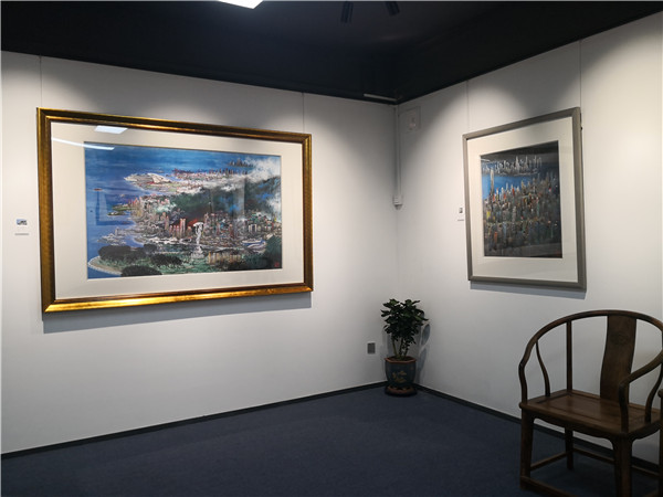 開(kāi)幕儀式上,珍風(fēng)閣藝術(shù)館總經(jīng)理夏雨致辭,感謝一從嘉賓和書(shū)畫(huà)愛(ài)好者們的捧場(chǎng)。隨后,深圳市美術(shù)家協(xié)會(huì)名譽(yù)主席、深圳美術(shù)館原館長(zhǎng)宋玉明先生致辭。他說(shuō),他來(lái)大芬村多次,一直關(guān)注大芬油畫(huà)村的發(fā)展和壯大,認(rèn)為大芬村為全國(guó)書(shū)畫(huà)走向市場(chǎng)開(kāi)了先例。個(gè)人在此舉辦畫(huà)展是首次,感覺(jué)很有意義,是一次走向市場(chǎng)的實(shí)踐機(jī)會(huì),值得珍惜和學(xué)習(xí),也歡迎大家批評(píng)指正。在現(xiàn)場(chǎng),宋玉明老師還回答了主持人的提問(wèn)。他謙虛地說(shuō),這次和陳湘波主席的聯(lián)展,有陳主席的花鳥(niǎo)和自己的城市山水,可以雅俗共賞。陳湘波老師因參加“兩會(huì)”未能出席開(kāi)幕儀式,但在會(huì)后及時(shí)趕到現(xiàn)場(chǎng),表達(dá)自己對(duì)來(lái)賓的感謝和自己對(duì)本次畫(huà)展組織的重視和支持。