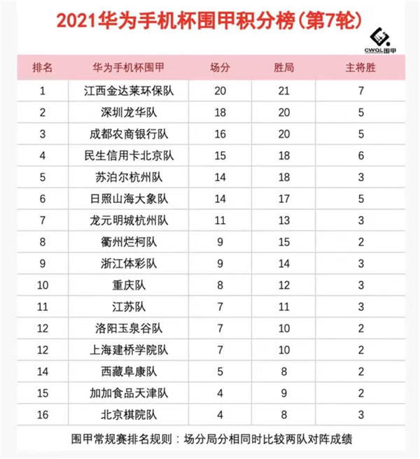 見圳客戶端?深圳新聞網(wǎng)2021年6月8日訊(記者周錦春)華為手機(jī)杯男子圍甲聯(lián)賽16支隊(duì)伍今日繼續(xù)在浙江長興捉對(duì)進(jìn)行第七輪的廝殺。繼第二階段首輪失利后,今日的深圳龍華隊(duì)似乎找回了第一階段五連勝的感覺,以3:1戰(zhàn)勝北京棋院隊(duì),從昨天的積分榜第三位前進(jìn)了一步,重拾升勢位居第二。江西隊(duì)依然神勇,以3:1擊敗洛陽隊(duì),繼續(xù)領(lǐng)跑積分榜。