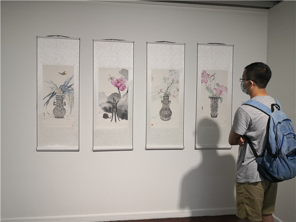 策展人莊程恒認(rèn)為,身處現(xiàn)代都市叢林之中,重新思考傳統(tǒng),非常有價(jià)值?!拔覀儗⑷粘P缘臅鴮懞屠L畫作為本次‘鵬滘雅會(huì)’的主題,融合花道和現(xiàn)代文創(chuàng),力圖構(gòu)建一個(gè)現(xiàn)代語境下的古典文化氛圍,呈現(xiàn)作為現(xiàn)代化都市深圳青年一代的藝術(shù)家如何以現(xiàn)代人的精神,詮釋古典藝術(shù)之美?!?/p>