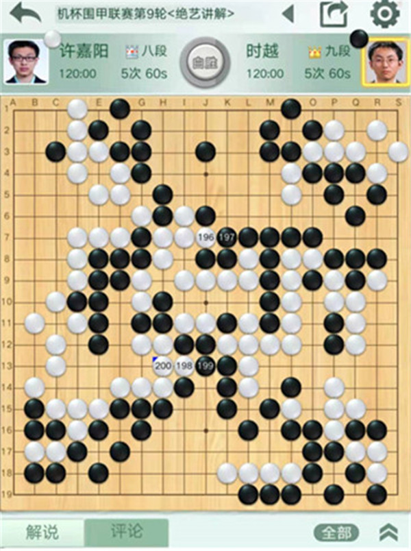 四臺等級分排名15的時越執(zhí)黑對陣排名14的許嘉陽。黑棋開局行棋有些平緩,慢慢等機會。但之后白棋發(fā)揮上佳,黑棋沒有明顯機會落敗。