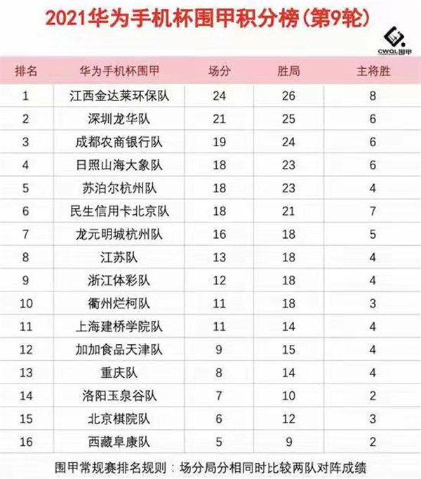 2021華為手機杯中國圍棋甲級聯(lián)賽常規(guī)賽第九輪江西金達萊環(huán)保隊3:1深圳龍華隊