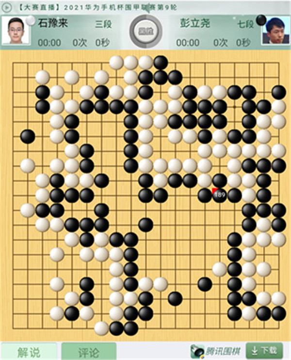 一臺石豫來執(zhí)白對陣彭立堯。開局白棋不錯,進入中盤白棋大局不足,被黑在中央雙方消長處連續(xù)行棋,局面被動。官子時白棋也失誤多多,最終黑棋大勝。