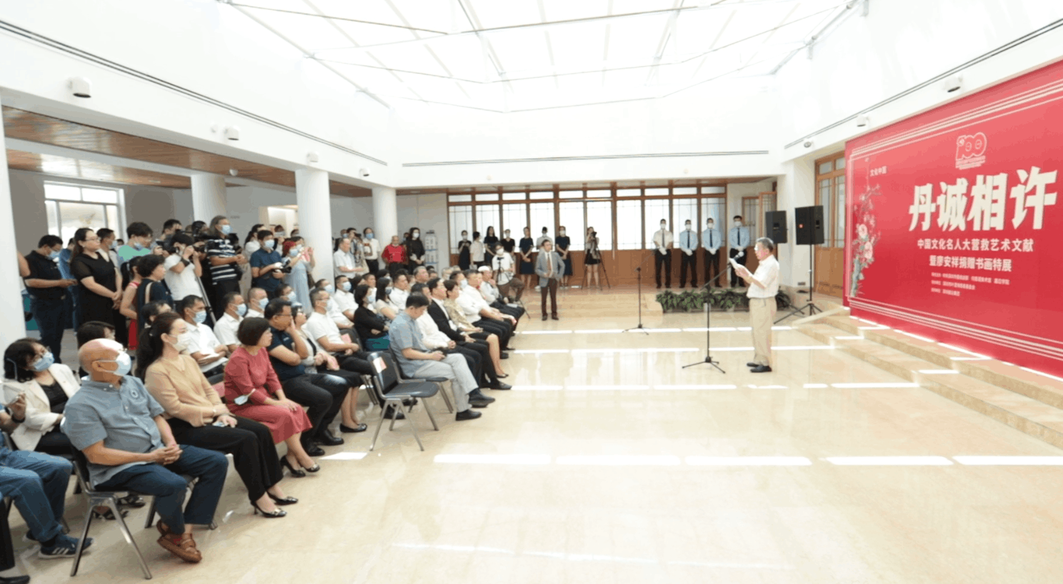 蔡顯良館長(zhǎng)向出席開(kāi)幕活動(dòng)的嘉賓表示感謝,他介紹,粵港“秘密大營(yíng)救”被譽(yù)為“抗戰(zhàn)以來(lái)最偉大的搶救工作”,它延續(xù)了中國(guó)文化的血脈,更彰顯了黨的力量、突顯了黨對(duì)文化事業(yè)的重視以及對(duì)文化人士的愛(ài)護(hù),對(duì)推動(dòng)全民族抗戰(zhàn)以及新中國(guó)的文化建設(shè)起到了重要作用。在中國(guó)共產(chǎn)黨百年華誕之際,為緬懷先輩的光輝事跡,傳承和弘揚(yáng)統(tǒng)戰(zhàn)精神,美術(shù)館與深圳市委統(tǒng)戰(zhàn)部、嘉應(yīng)學(xué)院聯(lián)合推出此次展覽,為觀眾帶來(lái)一場(chǎng)愛(ài)國(guó)、愛(ài)黨的文化之旅。