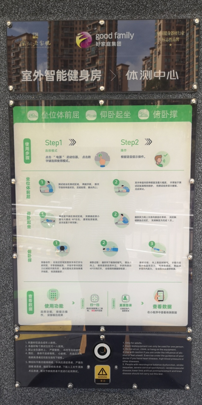 研發(fā)該套設(shè)備的深圳企業(yè)好家庭事業(yè)有限公司負(fù)責(zé)人張佳華表示,“此次被調(diào)研的室外智能健身設(shè)施已經(jīng)升級至4.0版本?;谖锫?lián)網(wǎng)、5G與大數(shù)據(jù)系統(tǒng),這套智能化設(shè)施擁有人臉識別、無感采集健身數(shù)據(jù)、手機(jī)掃碼可一鍵獲取專屬運(yùn)動處方的功能,可為市民提供個性化、多元化、科學(xué)化的健身服務(wù)。”