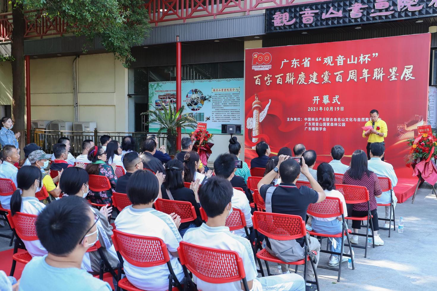 讀特客戶端·深圳新聞網(wǎng)2021年10月20日訊(記者 常軍平)佳聯(lián)致百年,濃墨譜華章。為慶祝中國共產(chǎn)黨成立一百周年,由中國林業(yè)產(chǎn)業(yè)聯(lián)合會名山文化與自然教育分會、廣東楹聯(lián)學會、廣東觀音山國家森林公園聯(lián)合主辦了“觀音山杯”百字百聯(lián)慶建黨百周年聯(lián)墨展,于10月19日在東莞觀音山美術館展出,展期1個月,即從10月19日一直持續(xù)至11月18日。據(jù)悉,本次聯(lián)墨展所展覽作品以廣東省“觀音山杯”百字百聯(lián)慶建黨百周年征聯(lián)大賽中獲獎的100幅佳聯(lián)為內容,由百名書法家書寫而成。展覽將分兩期展出,每期展出約50幅作品,期間將對廣大市民、游客免費開放。