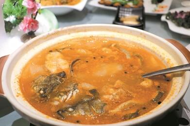 對不少吃貨來說,一份檸檬魚或是酸菜魚便能吃到滿足,然而這并非酸爽的最高境界,因為試過小柿子酸湯魚或能頓悟其中的玄妙。據(jù)東莞某國際大酒店主廚透露,將貴州小柿子用當(dāng)?shù)氐膫鹘y(tǒng)手法發(fā)酸,加上姜蒜等味料調(diào)制成濃稠適宜、酸味勁足的酸湯,鮮魚切成片,連同魚頭煮上幾分鐘即可新鮮上桌。