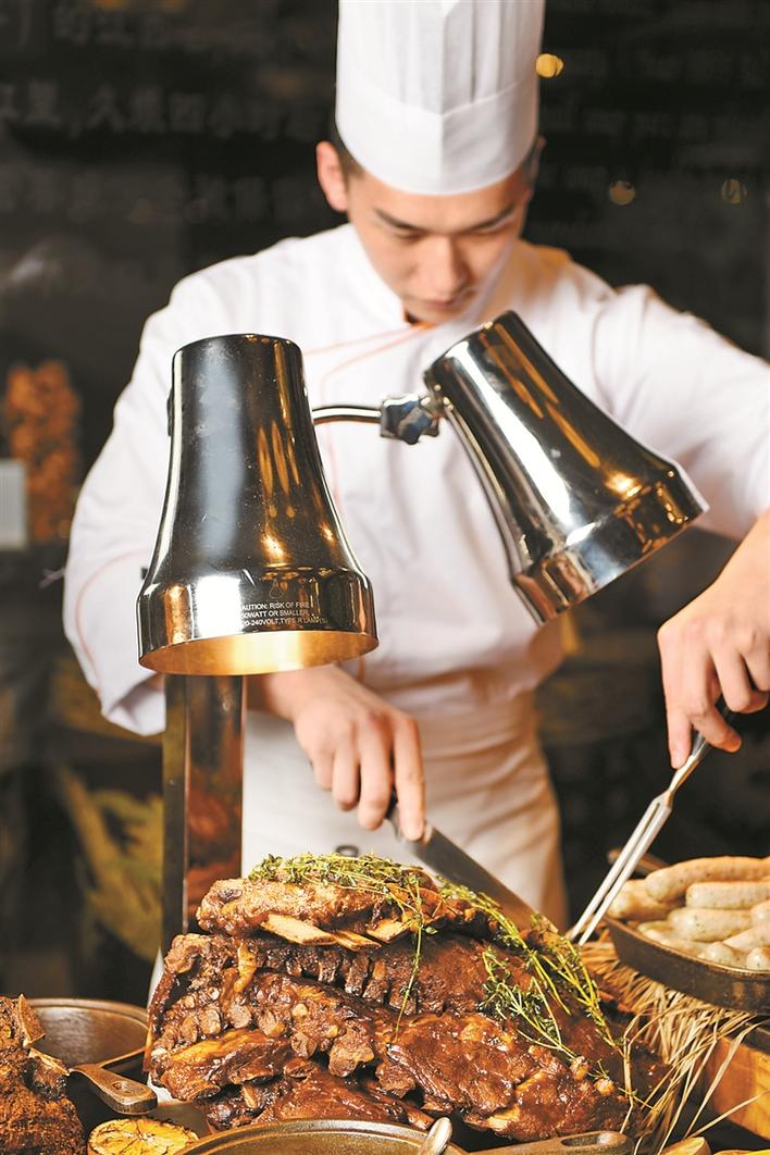 周五至周日則是熱情的“燃”主題自助晚餐。沙威瑪烤肉、T骨牛扒、意式烤豬肉卷、德國(guó)香腸以及德國(guó)堿水面包,酒店主廚做了最簡(jiǎn)單的處理,將肉質(zhì)最鮮美的味道保留下來(lái),再以520華攝氏度將美味繼續(xù)升溫。鮮咖啡餐廳位于酒店一層,環(huán)境優(yōu)雅舒適,全天候開(kāi)放,供應(yīng)各式散點(diǎn)菜品和自助餐,設(shè)有開(kāi)發(fā)式廚房,廚師當(dāng)場(chǎng)展示廚藝,炮制環(huán)球特色佳肴。(張璇)