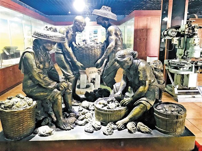 “茫茫大海接藍天,水下盡是養(yǎng)蠔田。阡陌田疇何界示,叔伯遙指高山巔?!辈┪镳^里這首關(guān)于“打山口”的詩歌深深吸引了記者。在長期的發(fā)展過程中,沙井蠔業(yè)逐步形成了打山口、流水定作息、集體協(xié)作等生產(chǎn)習俗和蠔殼砌墻、上香禮拜天后等生活習俗,有一整套成熟的養(yǎng)殖和加工技術(shù),形成了種蠔、挒蠔、搬蠔、撒蠔、屯蠔、撲蠔、撿蠔、開蠔等傳統(tǒng)工序。沙井蠔民生產(chǎn)習俗,世代相傳至今,具有一定的文化價值和社會價值,現(xiàn)已被列入深圳市非物質(zhì)文化遺產(chǎn)名錄。