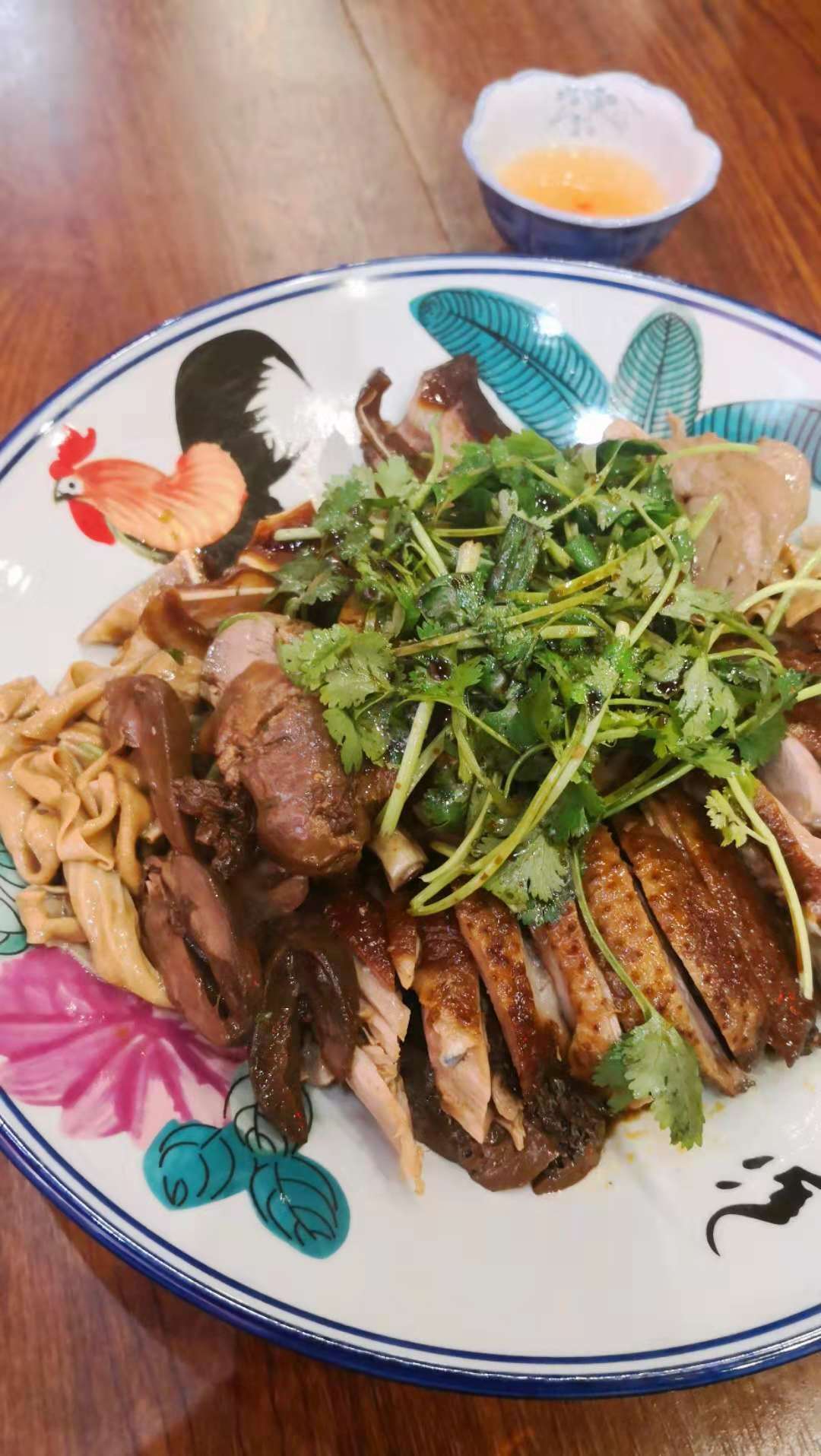 白切雞的制作,必須精心的去烹制,選料必須是用小母雞或閹雞,制作中最重要的是控制火候,以剛熟、切開后兩腿骨還微帶血絲者為宜,倘若過火,肉質(zhì)變老,便失去了白切雞爽滑鮮美的特點。