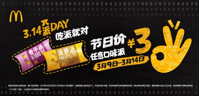 麥當(dāng)勞中國在3月9日-3月14日舉辦第五年“派DAY”活動(dòng)
