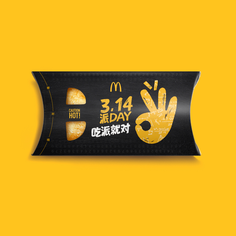 “派”與“π”諧音,麥當(dāng)勞將每年3月14日的國際圓周率日設(shè)為“派DAY”,邀請(qǐng)粉絲一起來餐廳吃派慶祝。
