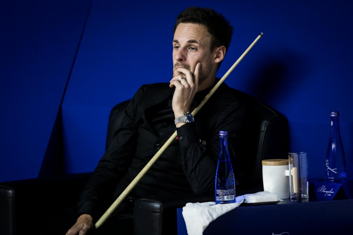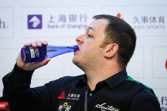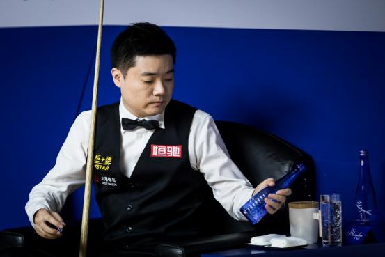 斯諾克可以說(shuō)是十分講究視覺與氛圍的運(yùn)動(dòng),哪怕不是“戲劇天才”如奧沙利文,當(dāng)所有選手按照臺(tái)球比賽的禮儀穿著西裝馬甲、領(lǐng)結(jié)、襯衣、西褲和皮鞋、比賽全程都恪守著紳士的美德——沉默和冷靜;當(dāng)他們?cè)诤谏ひ紊仙宰餍菹?優(yōu)雅地飲用玻璃瓶裝的Blairquhan本來(lái)旺礦泉水或蘇打水……觀眾有時(shí)候很難分辨,這到底是一場(chǎng)競(jìng)技體育,還是一場(chǎng)真實(shí)的舞臺(tái)劇。