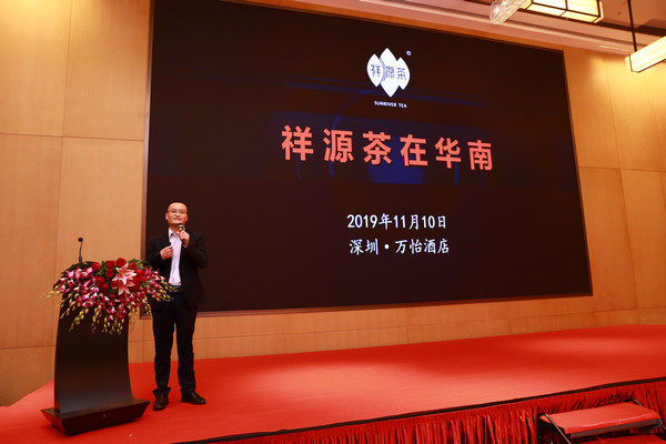 祥源茶業(yè)營銷中心助理總經(jīng)理華南、河南大區(qū)市場總監(jiān)趙東方先生介紹祥源茶未來在粵港澳大灣區(qū)及華南、西南市場面對的機(jī)遇和未來營銷布局