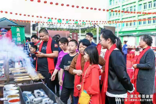 “太熱鬧了!離開湖南老家來到深圳后,從來沒有體會到這么熱鬧喜慶的場面。這么多人一起過年、吃宴席,也只有在湖南老家過年的時候才能感受到。農(nóng)耕記傳承湖南過年習俗和文化,是對傳統(tǒng)文化的繼承和發(fā)揚,值得點贊?!崩霞以?衡陽的顧客小羅在現(xiàn)場說到。