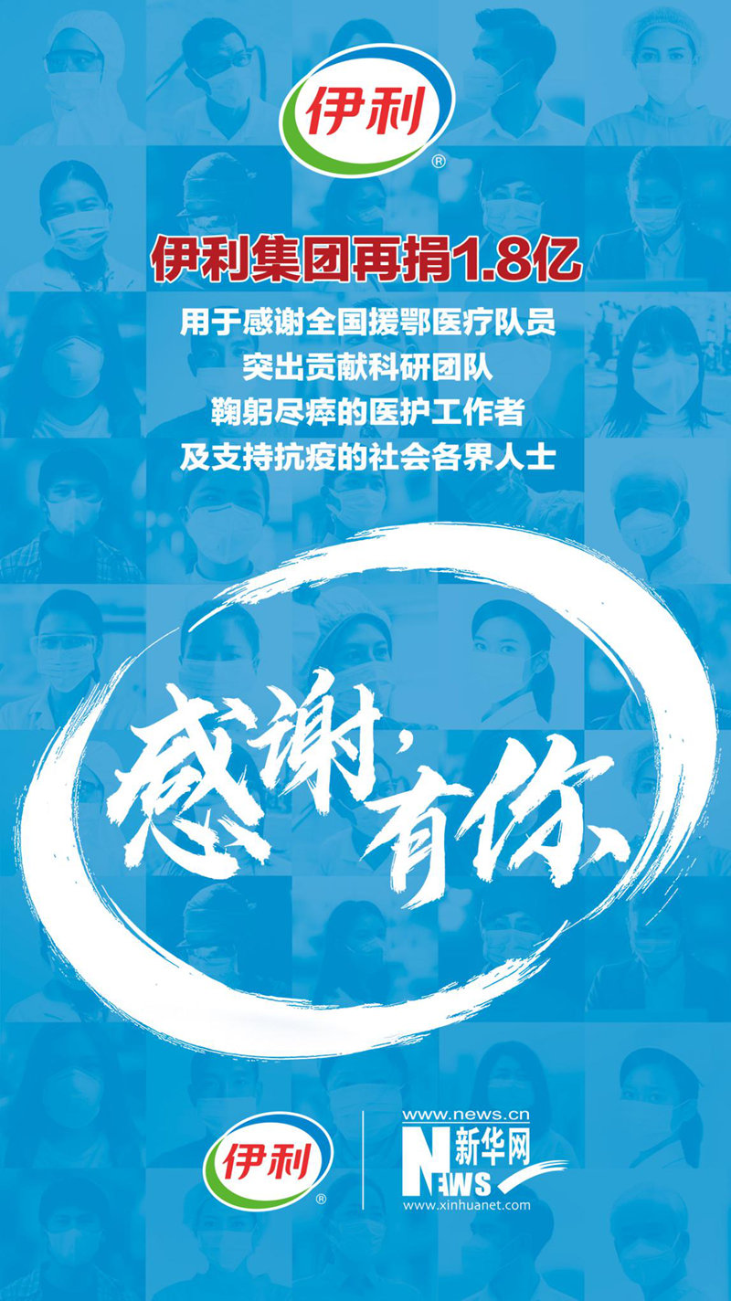 新華網(wǎng)北京3月26日電(胡可璐) 在這場戰(zhàn)“疫”中,無數(shù)平凡英雄帶給我們最多感動,他們以“逆行者”的無畏和擔(dān)當(dāng)筑起疫情防控生命線,守護(hù)著人民,守護(hù)著國家。3月26日,伊利集團(tuán)再捐1.8億,第一時間購買京東購物卡,贈送給全國所有援鄂醫(yī)療隊員,向他們提供全年營養(yǎng)支持;向鐘南山院士、李蘭娟院士、程京院士團(tuán)隊捐贈1500萬元,感謝科研工作者做出的突出貢獻(xiàn),共同推動健康領(lǐng)域的科研攻關(guān);第一時間購買京東購物卡,贈送給這次抗擊疫情中因公殉職醫(yī)護(hù)工作者的家屬,為他們提供連續(xù)十年的營養(yǎng)支持;同時也向奮戰(zhàn)在抗疫一線的社會各界人士提供營養(yǎng)保障。責(zé)任無界,大愛無疆,伊利累計捐贈額度將達(dá)2.8億,共迎抗疫勝利。