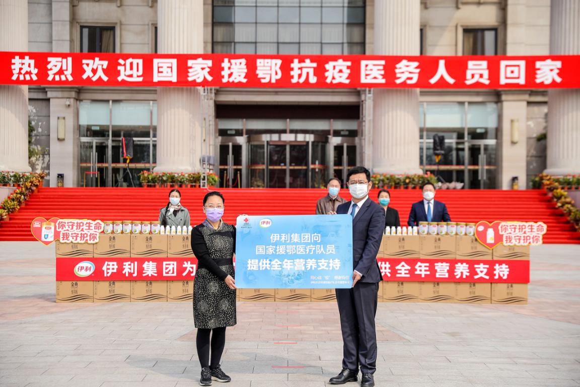 作為健康領(lǐng)域的龍頭企業(yè),伊利一直為抗疫提供支持。3月31日,伊利聯(lián)合國家衛(wèi)健委第一時(shí)間向全國所有援鄂醫(yī)療隊(duì)員提供全年?duì)I養(yǎng)支持,用愛心和營養(yǎng)持續(xù)守護(hù)一線抗疫醫(yī)療隊(duì)員的健康。這既是疫情爆發(fā)后,伊利為一線抗疫群體送去營養(yǎng)關(guān)愛的延伸,也將是隊(duì)員們回到工作崗位后,伊利迎接他們的一聲聲暖心問候。國家衛(wèi)生健康委食品安全標(biāo)準(zhǔn)與監(jiān)測評估司一級巡視員張磊時(shí)表示肯定和贊賞:“伊利為疫情防控工作做出了重要貢獻(xiàn),此次伊利第一時(shí)間為凱旋歸來的國家援鄂醫(yī)療隊(duì)提供全年?duì)I養(yǎng)支持,用愛心和營養(yǎng)持續(xù)守護(hù)隊(duì)員們的健康,這一切都讓我們看到了龍頭企業(yè)的社會責(zé)任與擔(dān)當(dāng)。”