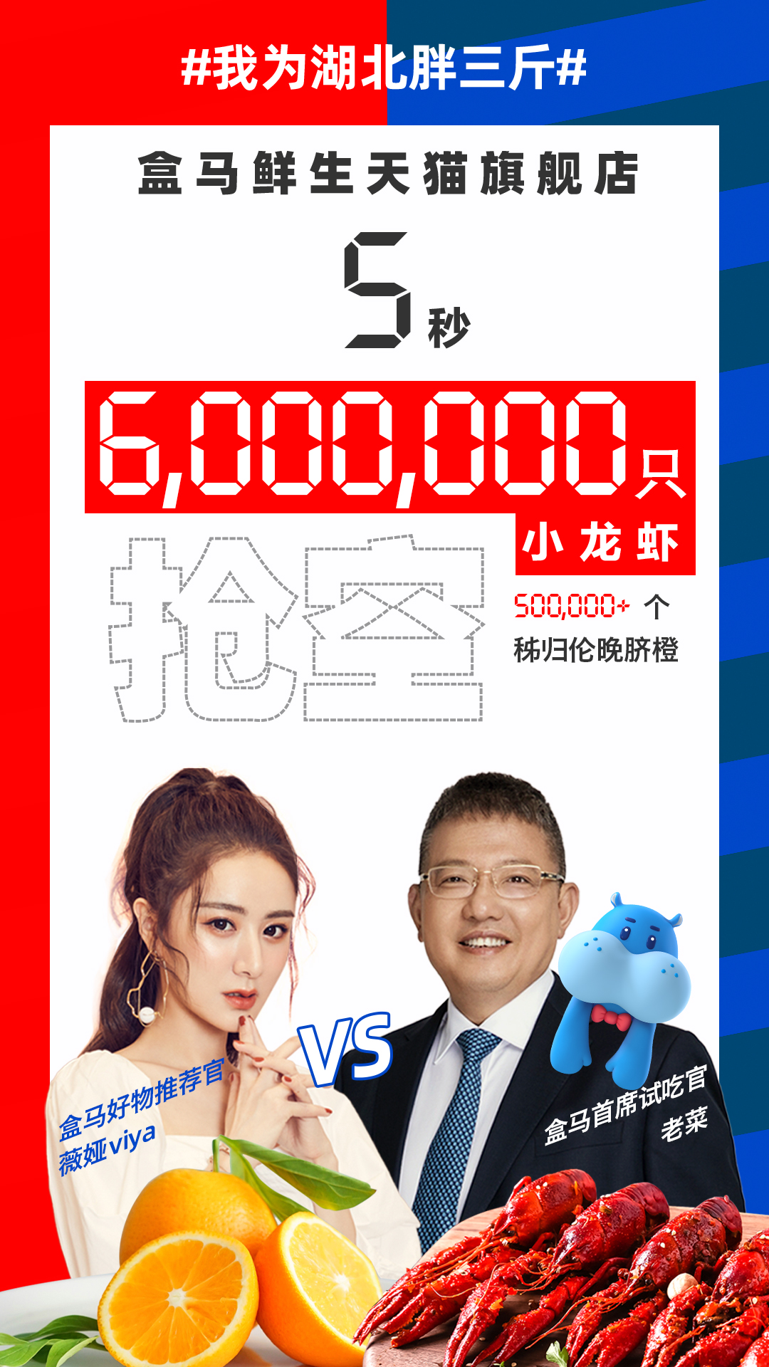 4月21日晚,盒馬總裁侯毅(花名老菜)做客淘寶薇婭直播間,為湖北農產品帶貨。侯毅直播時長半小時,但僅用時5秒鐘,盒馬鮮生天貓旗艦店內,網友就買光了600萬只湖北小龍蝦。與小龍蝦一起賣空的還有秭歸倫晚臍橙。25萬斤倫晚,3秒被搶光。超強的帶貨能力,讓兩人獲封“菜見婭”組合。