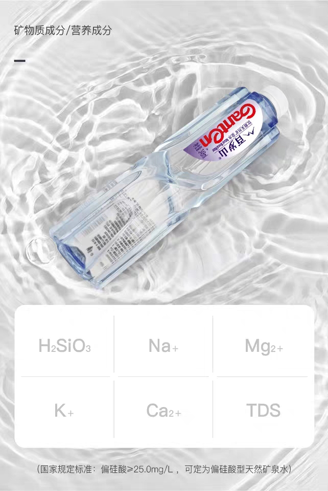 經(jīng)小編了解,百歲山天然礦泉水是采自于地下深層巖石裂隙中,從不使用湖水、河水、水庫水等地表水。而且,百歲山的礦泉水源具有《采礦許可證》,屬于國家液體礦產(chǎn),如同金礦銀礦。一經(jīng)開采可直接飲用,水源天然無污染,還含有高偏硅酸,以及鉀、鈉、鈣、鎂等豐富礦物質(zhì)及微量元素。正因為這樣優(yōu)質(zhì)珍貴的礦泉水源,才成就了水中貴族獨(dú)一無二的品質(zhì)。