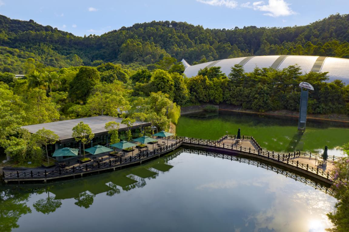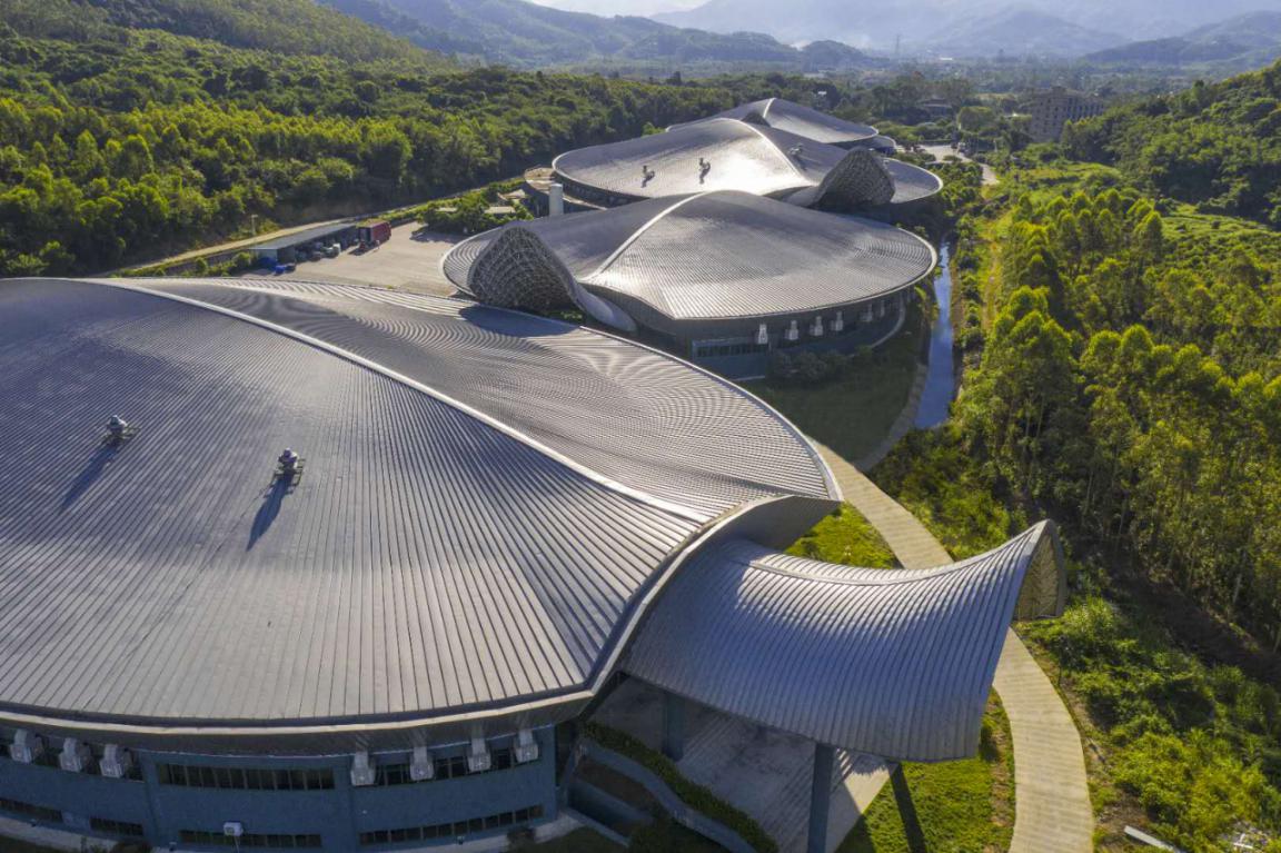 百歲山生產(chǎn)基地坐落在羅浮山脈腳下,整個工廠與周圍的自然生態(tài)融為一體。進(jìn)入廠區(qū)后,整潔開闊的道路、郁郁蔥蔥的樹木、頗具藝術(shù)感的銀龜型廠房,都讓人不敢相信這里是一個工廠,簡直就是旅游景區(qū),也太美了吧!