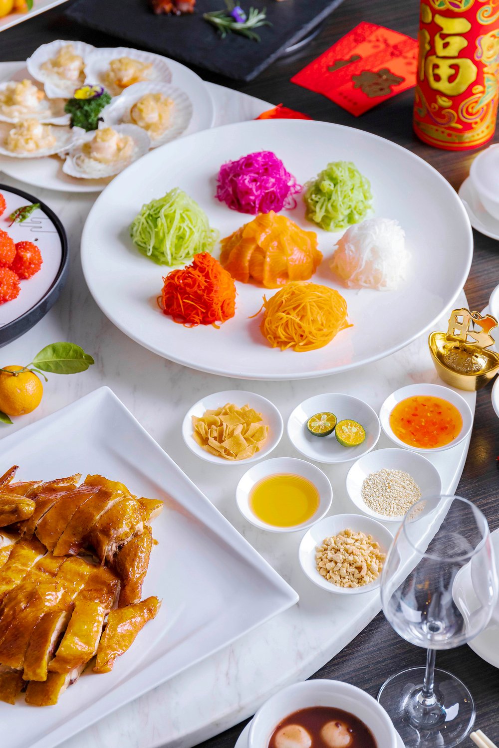 除了兩款福袋,另外還有5款年夜飯可以選擇,“迎春接福宴”、“闔家團(tuán)圓宴”、“萬事如意宴”、“花開富貴宴”以及“金玉滿堂宴”。金茂深圳JW萬豪酒店中餐廳主廚劉師傅精心設(shè)計的賀歲菜肴除了擺盤講究之外,亦道道有講究。如:寓意“風(fēng)生水起”的三文魚生撈起,以三文魚生為主要食材,配以六款色彩繽紛的蔬菜絲,享用時眾賓客齊齊用筷子高高撈起,在開席即可討個“越撈越旺”的好彩頭!還有上菜時冒出“仙氣”的爆汁紅顏妃子笑,寓意“吉祥如意”、寓意“牛氣沖天”的香芹腰果牛肉粒、“年年有余”的清蒸老虎斑、“五谷豐登”的總廚鮑汁炒飯等多款吉祥菜式。