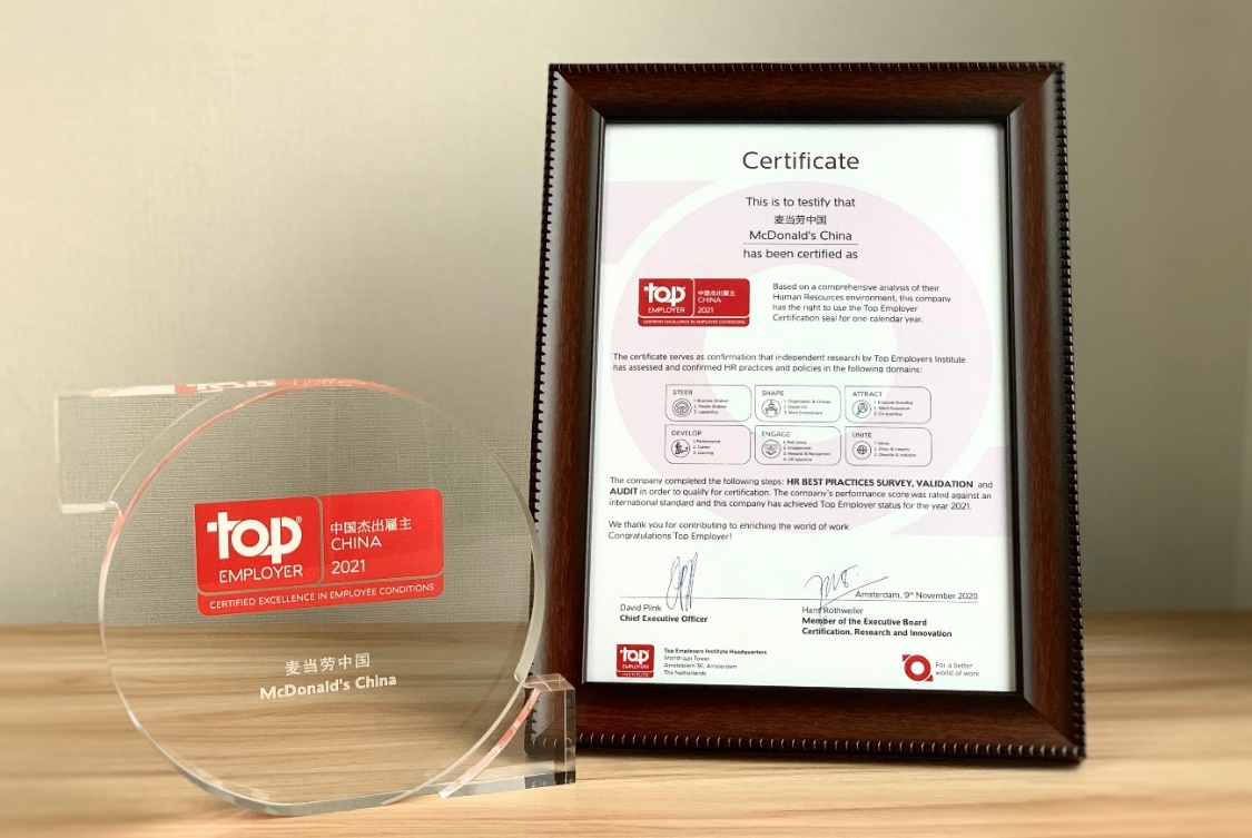 麥當(dāng)勞中國榮獲“中國杰出雇主2021”認(rèn)證
