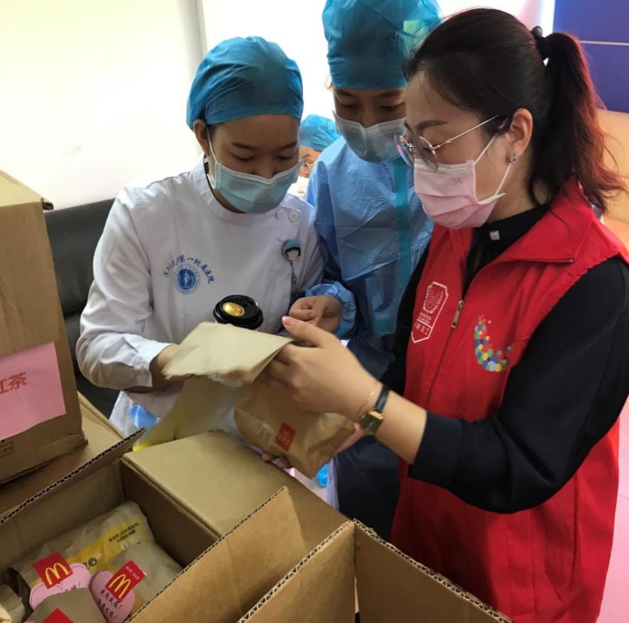 深圳麥當(dāng)勞“麥麥義工團”小伙伴們?yōu)榭挂咭痪€醫(yī)護人員送去愛心餐食