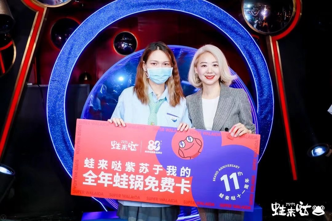 蛙來噠超級(jí)品牌日派對(duì)上,由蛙來噠董事長羅清親自為“2021年度蛙粉”獲得者頒獎(jiǎng),同時(shí)抽取了“蛙來噠全年免排隊(duì)卡”以及“蛙來噠全年蛙鍋免費(fèi)卡”等蛙來噠品牌日專屬大獎(jiǎng),將品牌日的氛圍推向高潮。