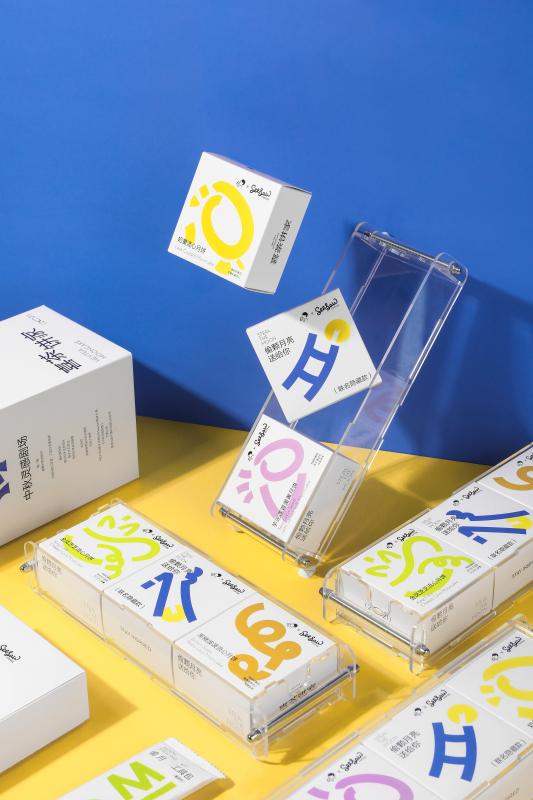 作為和Seesaw聯(lián)名的禮盒,為了增加互動(dòng)感和cp感,喜茶將“偷顆月亮送給你”的主題在外包裝設(shè)計(jì)上加以延展,設(shè)定了“互偷月亮”的概念,將靈感注入外包裝設(shè)計(jì)中以圖形上的方圓結(jié)合、顏色上的簡(jiǎn)約和諧,以及喜茶和Seesaw特有元素的交相呼應(yīng),為消費(fèi)者帶來兼具互動(dòng)性、包容性的視覺體驗(yàn)。方圓的簡(jiǎn)約圖形結(jié)合馬克筆筆跡式的設(shè)計(jì)元素,給人以想象空間。同時(shí),結(jié)合代表“夜晚”的“藍(lán)色”和代表“月亮”的“黃色”這兩種顏色系統(tǒng)的運(yùn)用,進(jìn)一步對(duì)主題加以呈現(xiàn)。禮盒整體上則突破傳統(tǒng)的橫放型禮盒式樣,采用直立型包裝,令人耳目一新。每一處設(shè)計(jì),都延續(xù)了喜茶靈感。