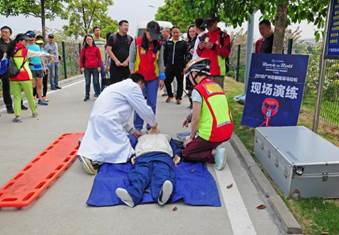 據(jù)了解,本次賽事在賽程中設(shè)有9個醫(yī)療點,每隔3公里即設(shè)立一個,并將沿運(yùn)動員跑步路線安排11臺救護(hù)車、15個賽道急救組、65名醫(yī)護(hù)人員和135名醫(yī)療志愿者(其中包括40名急救跑者)。除此之外,賽事組委會還在花都區(qū)人民醫(yī)院、中西醫(yī)結(jié)合醫(yī)院開通了綠色通道并成立急救應(yīng)急小組,形成了場內(nèi)、院內(nèi)一體化的醫(yī)療救助系統(tǒng),為賽事醫(yī)療提供全方位支持和保障。