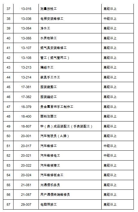 ②職業(yè)資格證書的工種符合《深圳市技能人才引進(jìn)緊缺職業(yè)目錄(2017)》。(見下表)
