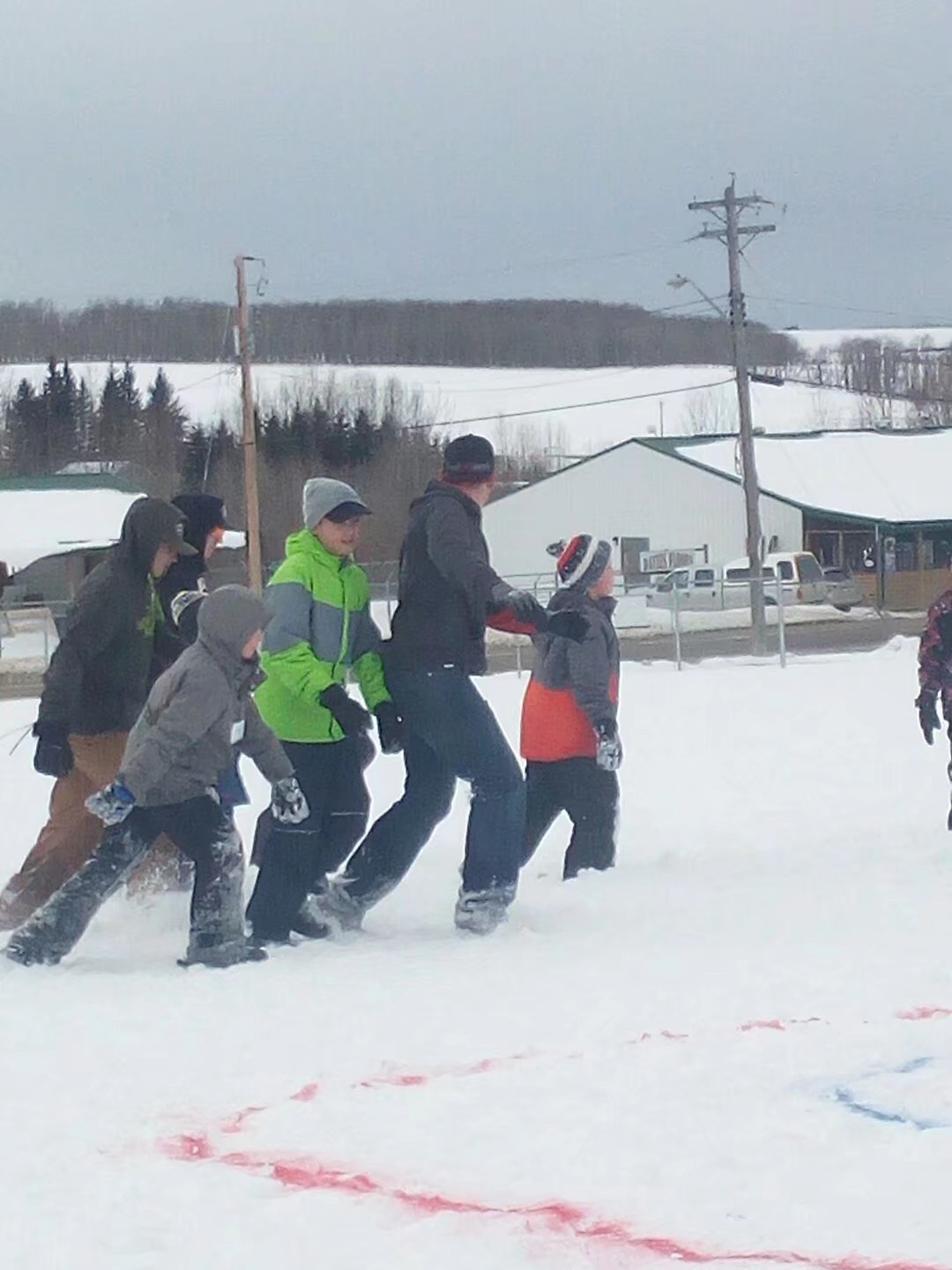 在學(xué)校,一望無(wú)際的操場(chǎng)上,雪丘一個(gè)比一個(gè)高,當(dāng)你站在雪丘的至高點(diǎn),笨重的校巴就不再是那么大了。喜歡雪的同學(xué)們一點(diǎn)也不怕冷。他們?cè)谘┑乩锎蚯?、摔跤、滑雪,還不時(shí)地會(huì)聽到尖叫聲,原來(lái)是同學(xué)相互在雪丘上推上推下,開心得不亦樂(lè)乎。