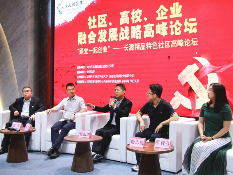 桃源街道黨工委書記黃健表示,本次論壇是智園黨群服務(wù)中心正式開放以來的第一場大型活動,桃源街道黨工委將努力把這里打造成為“一中心兩平臺”,即社區(qū)、校區(qū)、園區(qū)“三區(qū)融合”展示中心,北部片區(qū)園區(qū)黨群服務(wù)平臺,資源共建、共享、共治的對接平臺,把智園和長源片區(qū)打造成為“三區(qū)融合”的典范。嘉賓易松國作為主講嘉賓,進(jìn)行了《共建、共治、共享視角下的社區(qū)融合》主題演講。隨后嘉賓們圍繞黨建統(tǒng)領(lǐng)的社區(qū)融合建設(shè)中,企業(yè)、高校、社區(qū)如何發(fā)揮各自優(yōu)勢,提供資源與平臺,打造長源精品特色社區(qū)各抒己見。嘉賓林彥結(jié)合本公司的孵化發(fā)展歷程暢談智園的發(fā)展,他表示目前公司已經(jīng)與全國多家高校建立了合作關(guān)系,共同推動創(chuàng)新技術(shù)的產(chǎn)業(yè)化。嘉賓藍(lán)海指出:南方科技大學(xué)的迅速崛起,從科研成果產(chǎn)業(yè)化、人才輸送等方面為長源社區(qū)的發(fā)展提供了廣闊的空間。