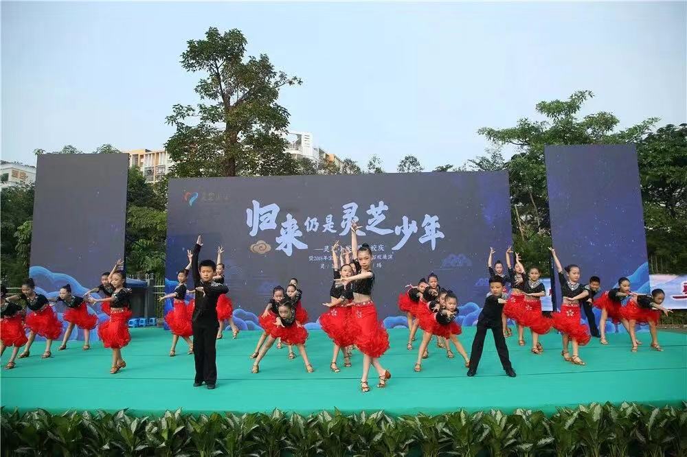 校慶當(dāng)天,近兩個(gè)小時(shí)的“歸來仍是靈芝少年”的展演,編排精巧,分萌芽、追夢、綻放、芳華、展望五個(gè)篇章,有合唱、師生舞蹈、健美操、詩歌朗誦、器樂表演等。整臺節(jié)目既生動反映了靈芝小學(xué)從無到有,從小變大的發(fā)展歷程,更全面展示了學(xué)校五年來砥礪前行所取得的累累碩果。