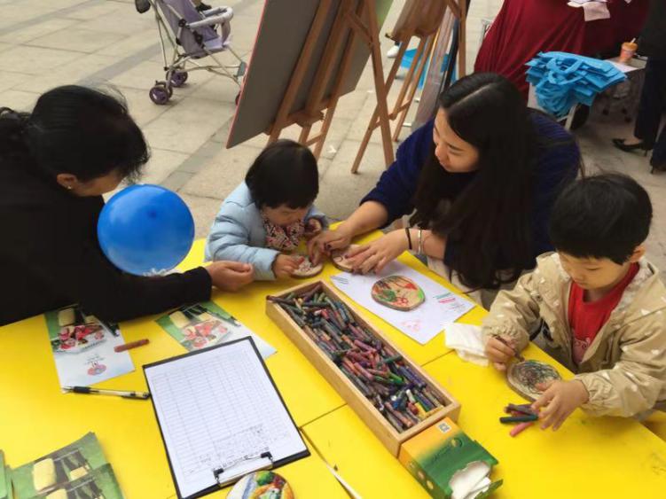 市民在體驗(yàn)?zāi)緣K繪畫項(xiàng)目