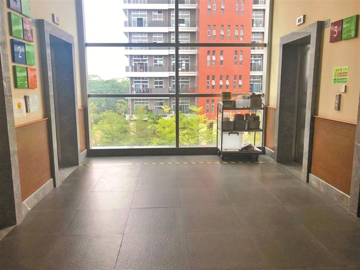 上周五記者來(lái)到事發(fā)現(xiàn)場(chǎng),長(zhǎng)廊中的餐車(chē)均已撤走,但明顯可看出,若擺上餐車(chē),狹窄的長(zhǎng)廊必定會(huì)對(duì)園中幼童產(chǎn)生安全隱患。校方表示,目前已選定學(xué)校教學(xué)樓電梯前一處空閑區(qū)域作為餐車(chē)放置區(qū),該區(qū)域較為寬闊,且孩子們少在此處上下,相對(duì)安全;就餐時(shí)間之外,學(xué)校也會(huì)將餐車(chē)撤離教學(xué)活動(dòng)區(qū)域。