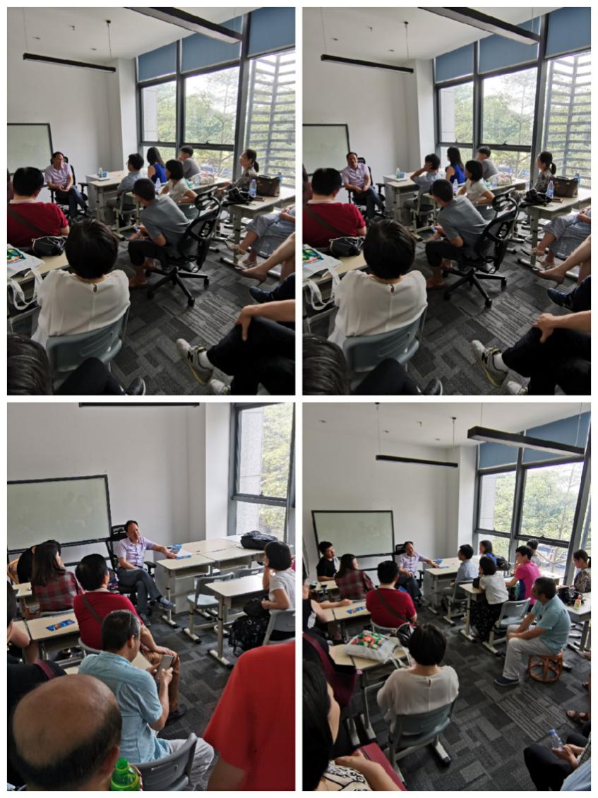 受畢莘教育的邀請,朱全民老師和周楷文同學(xué)于當日下午兩點來到公司繼續(xù)交流,朱老師以更近的距離與家長進行溝通,回答家長們的提問。從家長們關(guān)切的表情以及當場輕松的氣氛不難看出,與國內(nèi)頂級名師的對話讓家長們收獲頗豐;周楷文同學(xué)則主持一門以“字符串哈希和kmp算法”為主要內(nèi)容的公開課,近距離地帶來一些周同學(xué)獨家積累的實戰(zhàn)相關(guān)的參賽技巧演示,從孩子們認真的臉上,反射出對信息學(xué)競賽的愛好,對心中“學(xué)神”的“敬仰”。